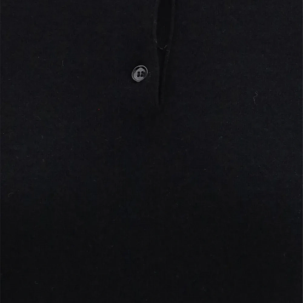черное кашемировое поло с воротником, короткими рукавами и прямым подолом