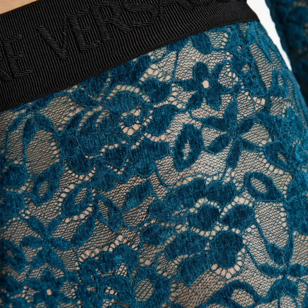 сине-зеленое кружево с цветочным узором, расклешенный подол, эластичный пояс