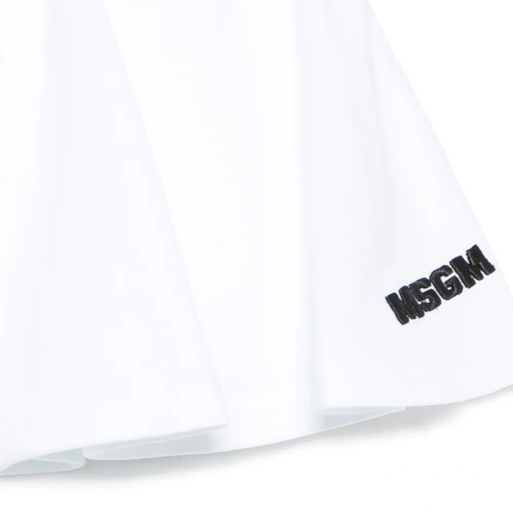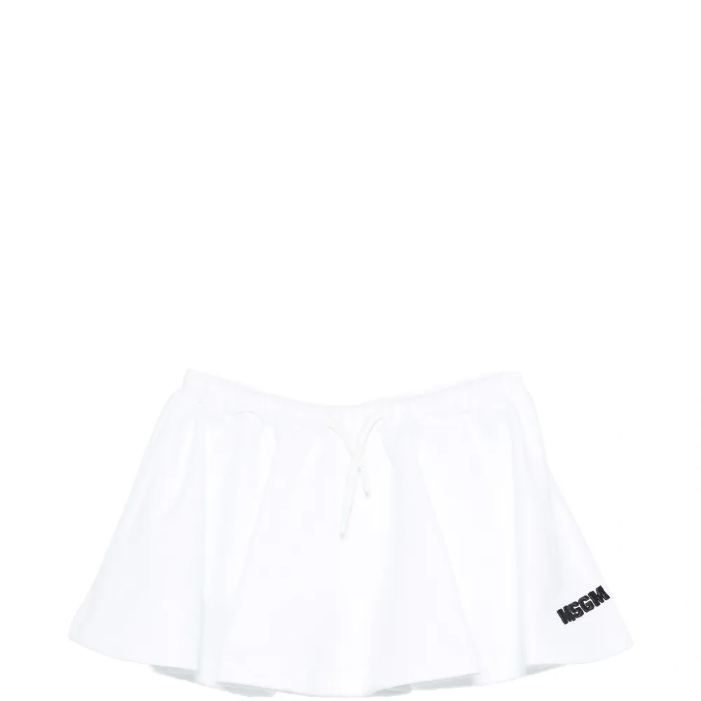белая юбка-шорты, кулиска на талии, расклёшенный силуэт, детали с логотипом, элементы шорт