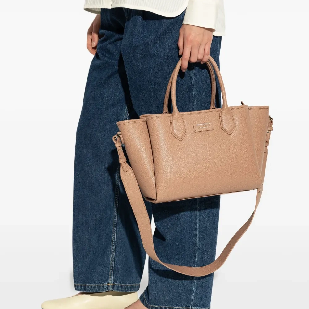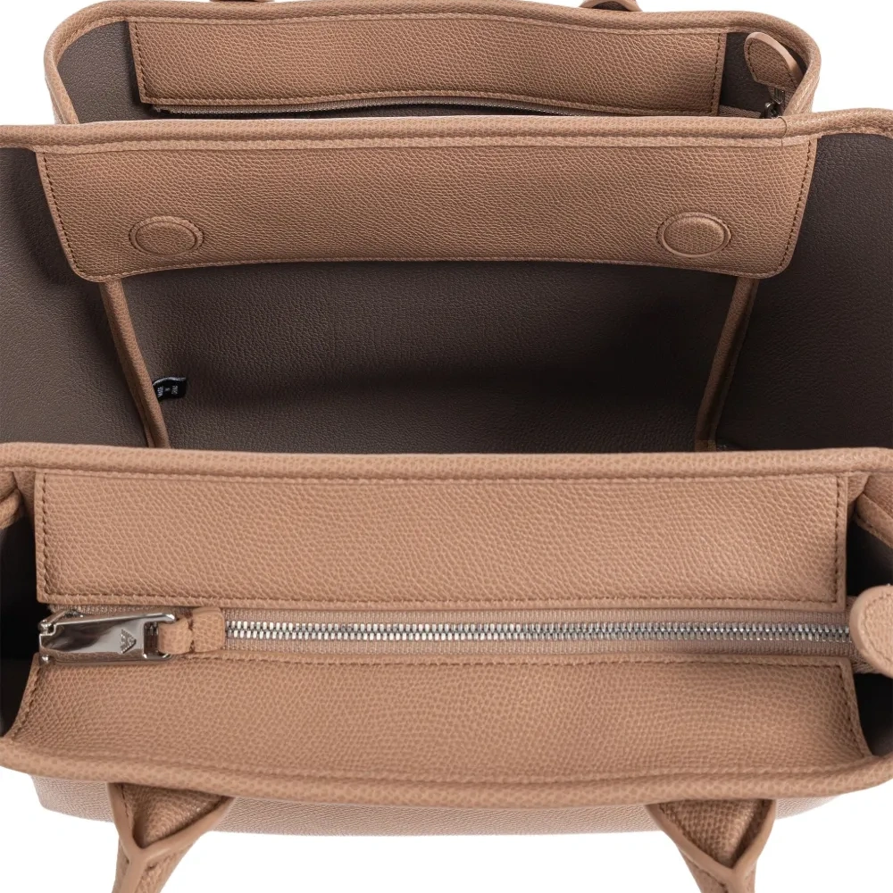светло-коричневые верхние ручки, съемный плечевой ремень, зернистая текстура, застежка-молния